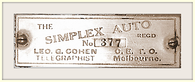 In 1923 the Simplex Auto was adopted by the PMG as a standard sending aid for the Commonwealth of Australia and
