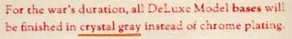 The base was painted as well on the Deluxe, chrome also needed for WW2,