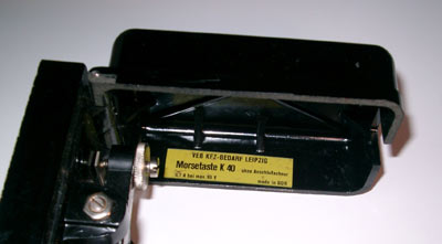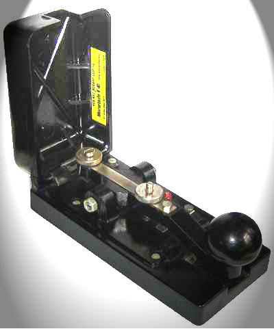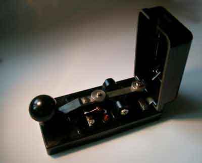 Morsetaste mit Bakelitdeckel, auch der Tasthebel ist daraus hergestellt.